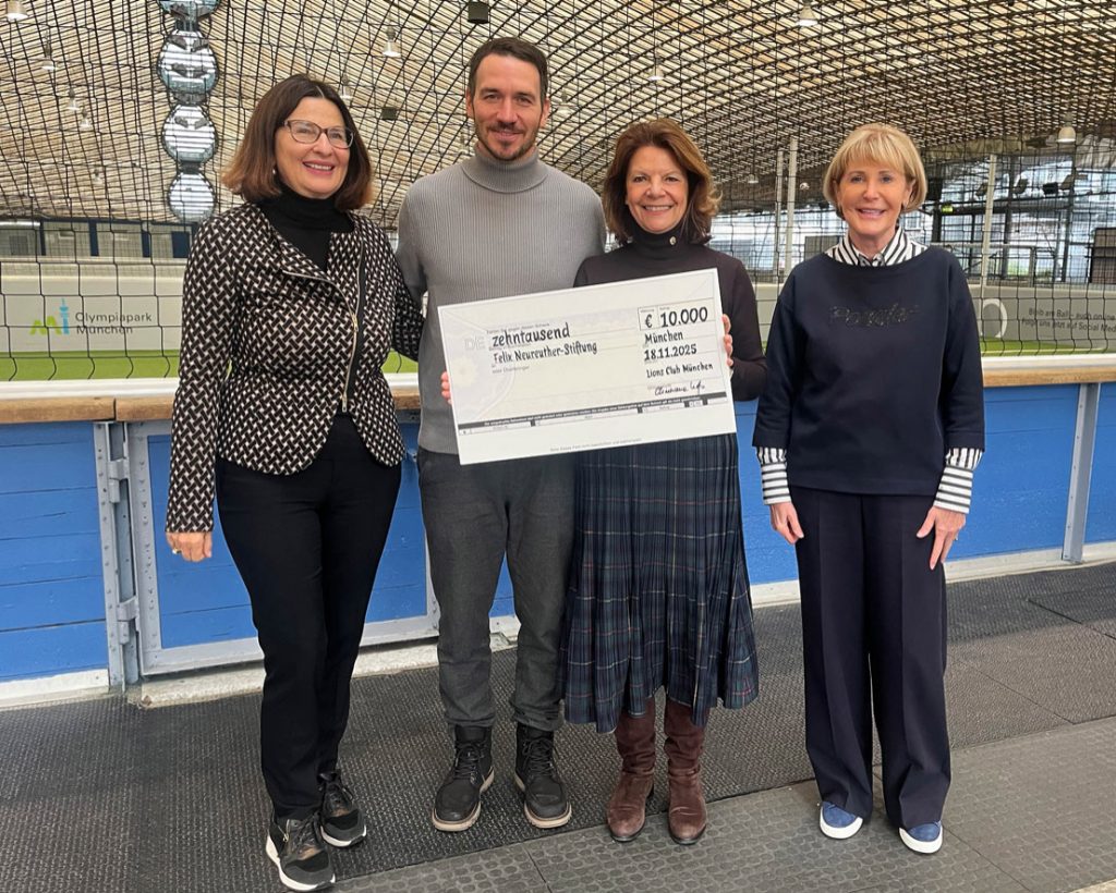 Philipp Lahm freut sich über unsere erneute Spende, einen Scheck über €9.500 als Erlös aus dem SoccaFive Turnier 2020 des Lions Clubs München. Die Philipp-Lahm Stiftung unterstützt Projekte für Kinder in Deutschland und in Südafrika. In Deutschland werden Sommercamps geboten, deren Ziel ist die Förderung von Persönlichkeit, Bewegung und richtige Ernährung von Schulkindern. In Südafrika werden die Kinder in Townships über Sportangebote und pädagogische Betreuung vielfältig gefördert.